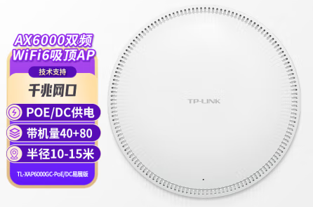 參數 [品牌] 普聯 [型號] 普聯(TP-LINK)2.5G口AX6000雙頻WiFi6無線吸頂式AP面板路由器全屋wifi接入點TL-XAP6000GC-PoE/DC易展版