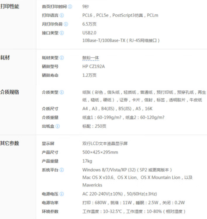 惠普(HP)LaserJet Pro M701n A3黑白激光打印機