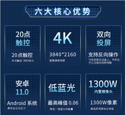 主體分辨率4K型號HD-86CE系統(tǒng)Windows認(rèn)證型號HD-86CE規(guī)格屏幕顯示彩色手寫觸摸支持手寫觸摸清晰度1080P是否支持視頻會議支持視頻會議帶音響帶音響